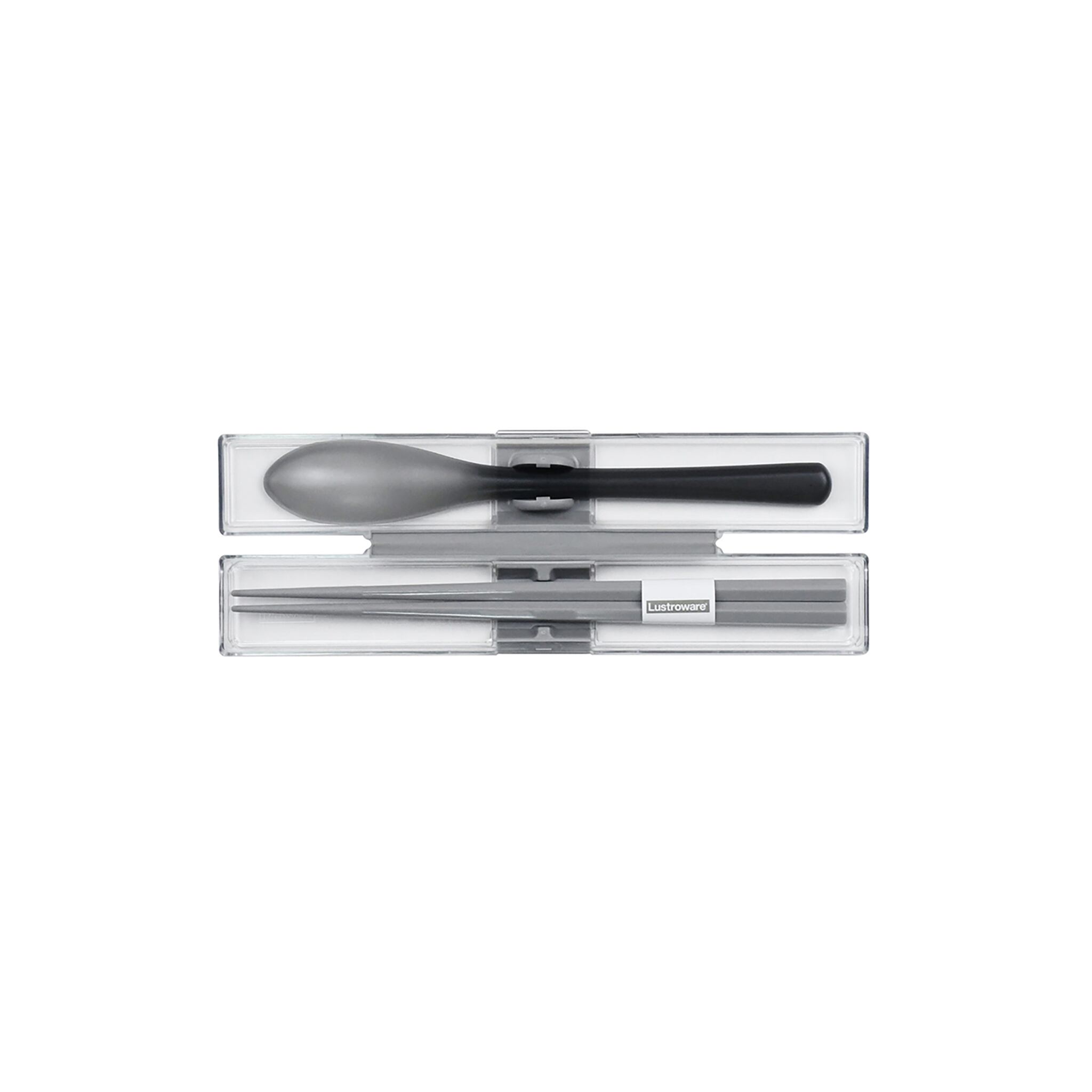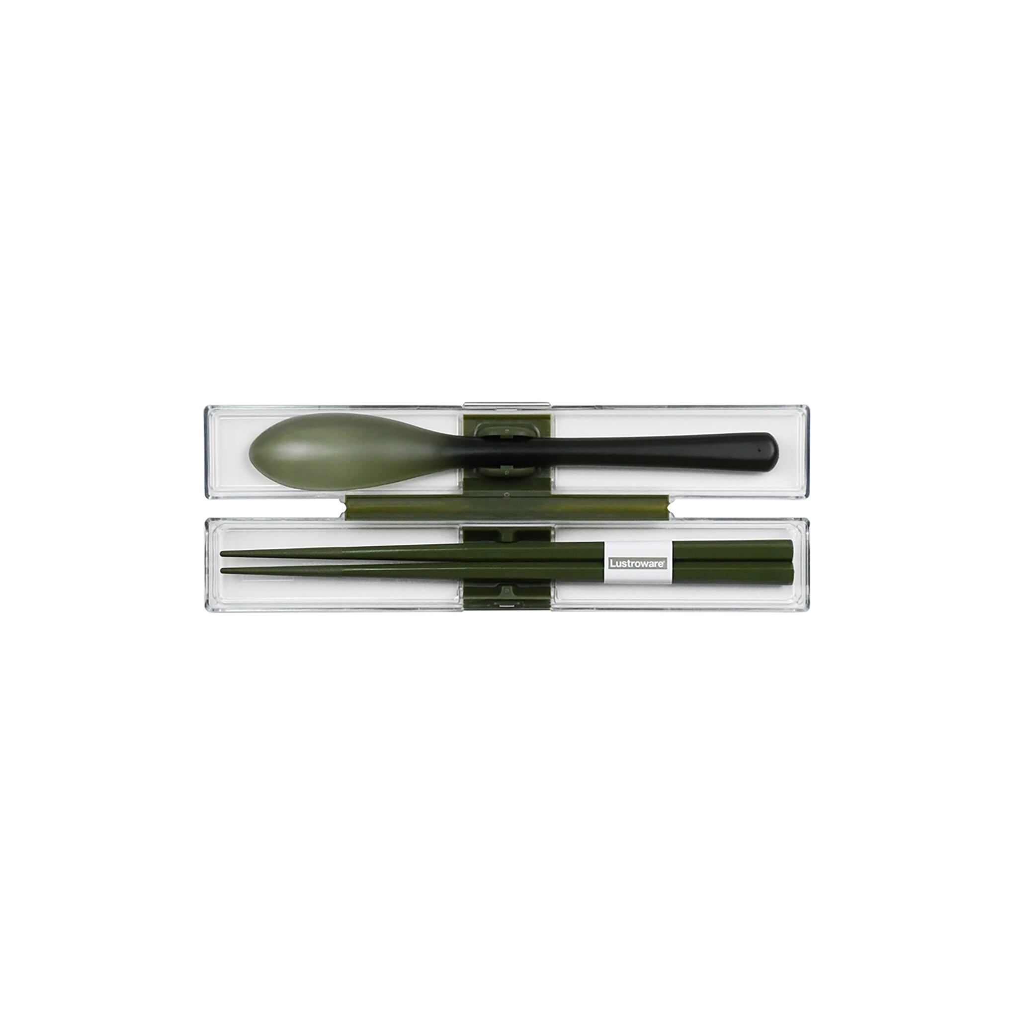 ケースが壊れにくく、カチャカチャ音防止ホルダー付きのスプーンと箸セットです。